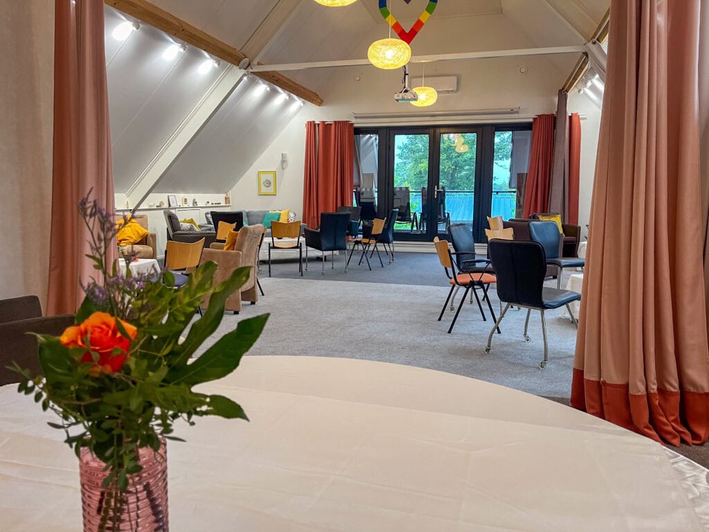Onze bezinningsruimte biedt een serene plek voor onder andere vergaderingen, yoga en retraites.