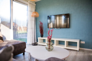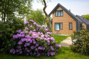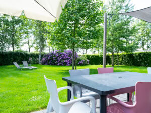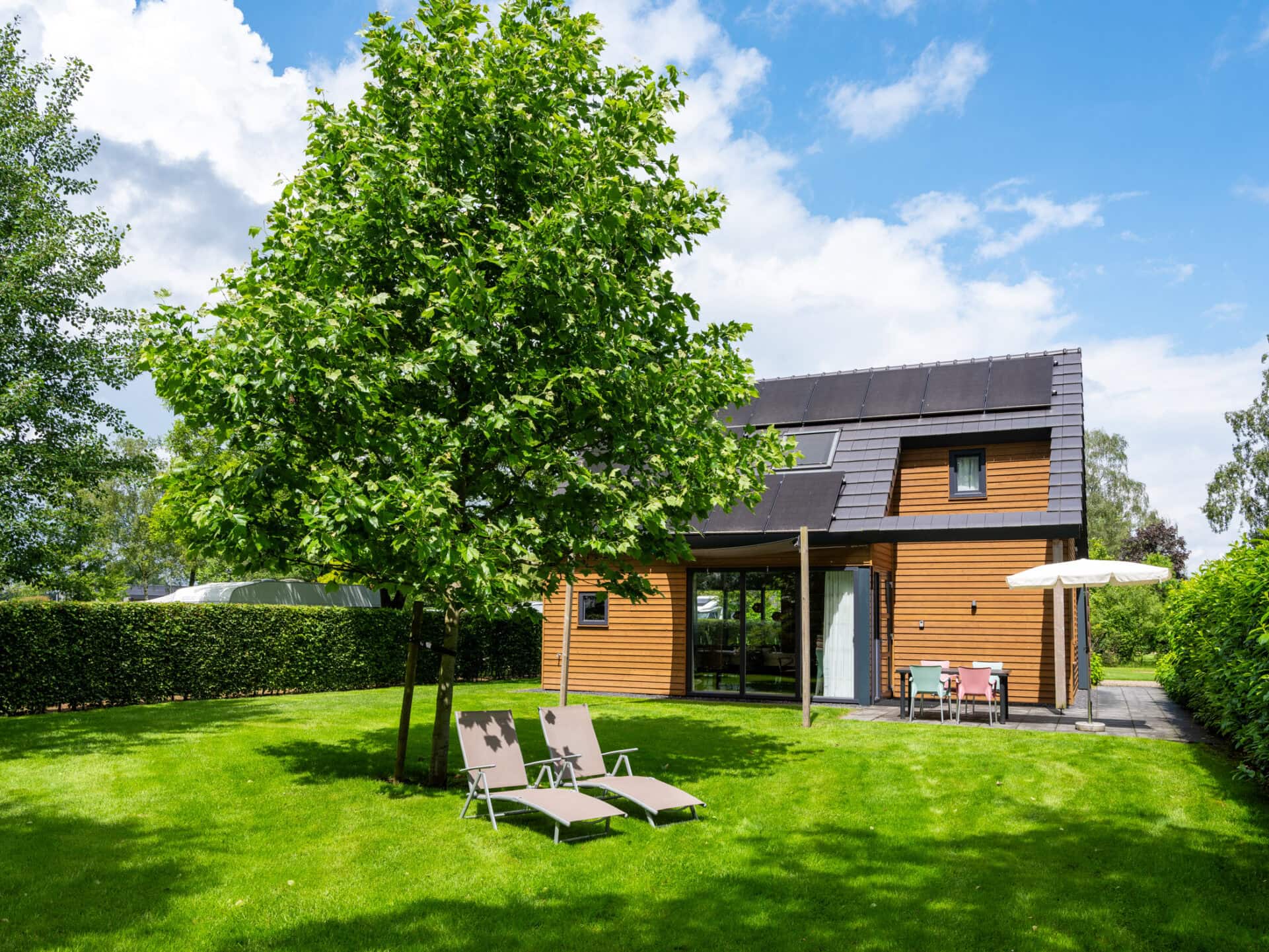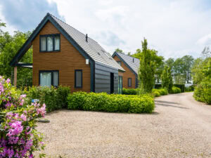 De vakantievilla’s liggen aan de rand van de camping, in een rustige hoek met veel privacy. In de ruime, omheinde tuin kunnen kinderen veilig spelen op het grote grasveld. Ook is er een gezellig terras waar je samen kunt genieten van de buitenlucht en het groen om je heen.