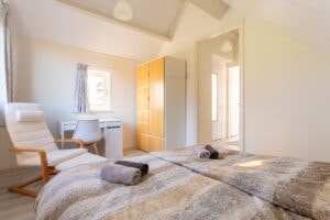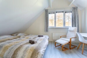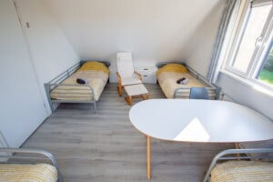 Op de benedenverdieping is een tweepersoons slaapkamer met eigen badkamer. Dat is prettig als jij en je partner toch wat privacy willen. Op de eerste verdieping zijn nog 2 slaapkamers. Eentje met 2 slaapplaatsen en de ander met 4 slaapplaatsen. Alle slaapkamers zijn voorzien van horren, zodat je geen last hebt van vervelende muggen.