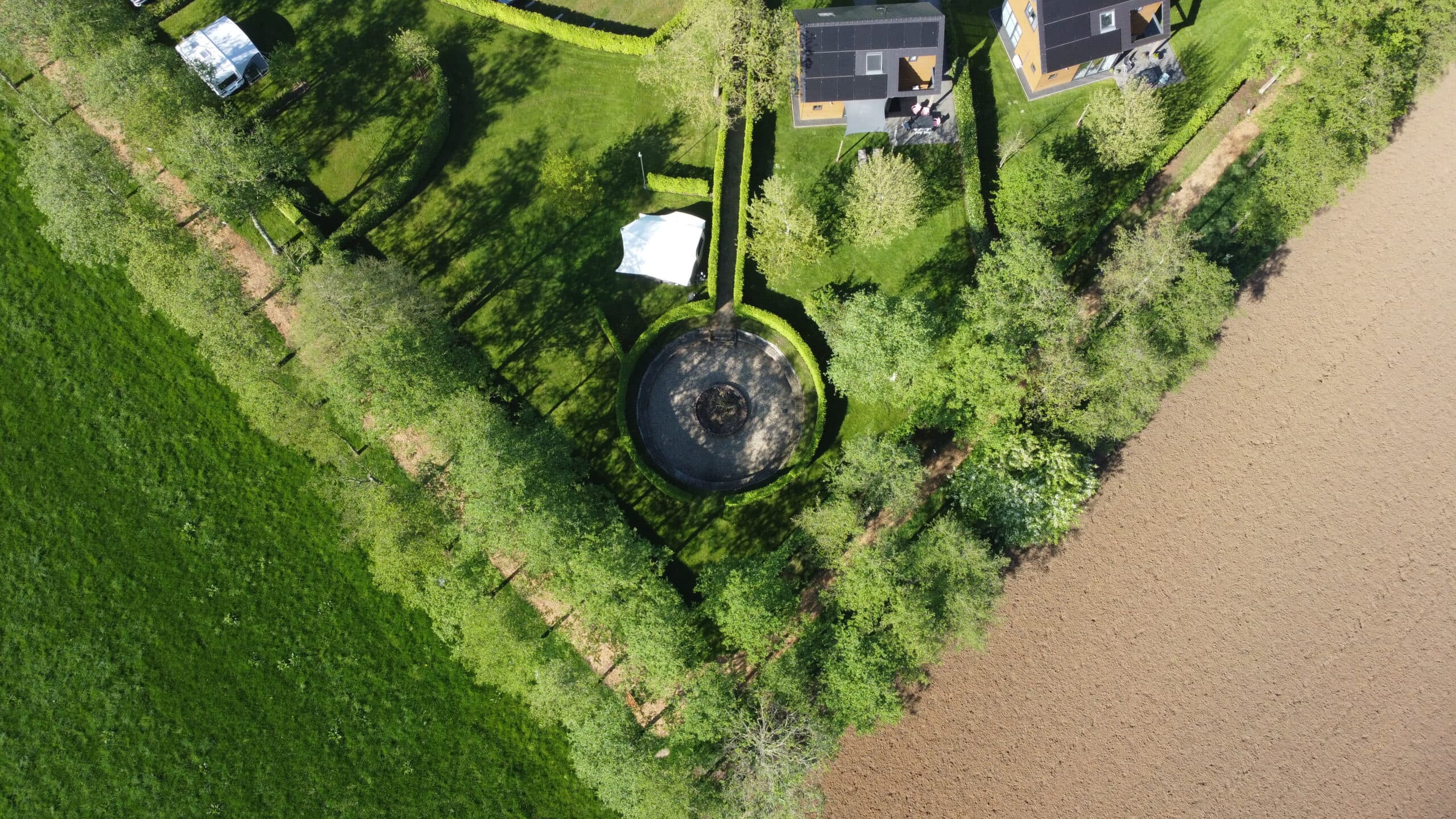 Op ons terrein komen de vier elementen op een unieke manier samen. Water (de fontein), vuur (de vuurkuil), aarde (de driehoekige zandbak) en lucht (het luchtpad) vormen samen een harmonieus geheel waarin natuur en beleving elkaar versterken